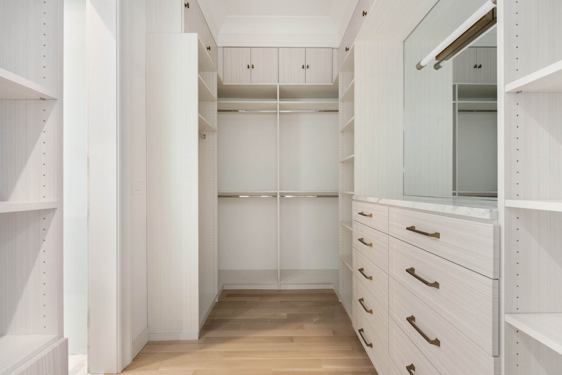 Maximize your storage potential with tailored closets and pantries. We create organized, elegant solutions that bring both utility and sophistication to your home.